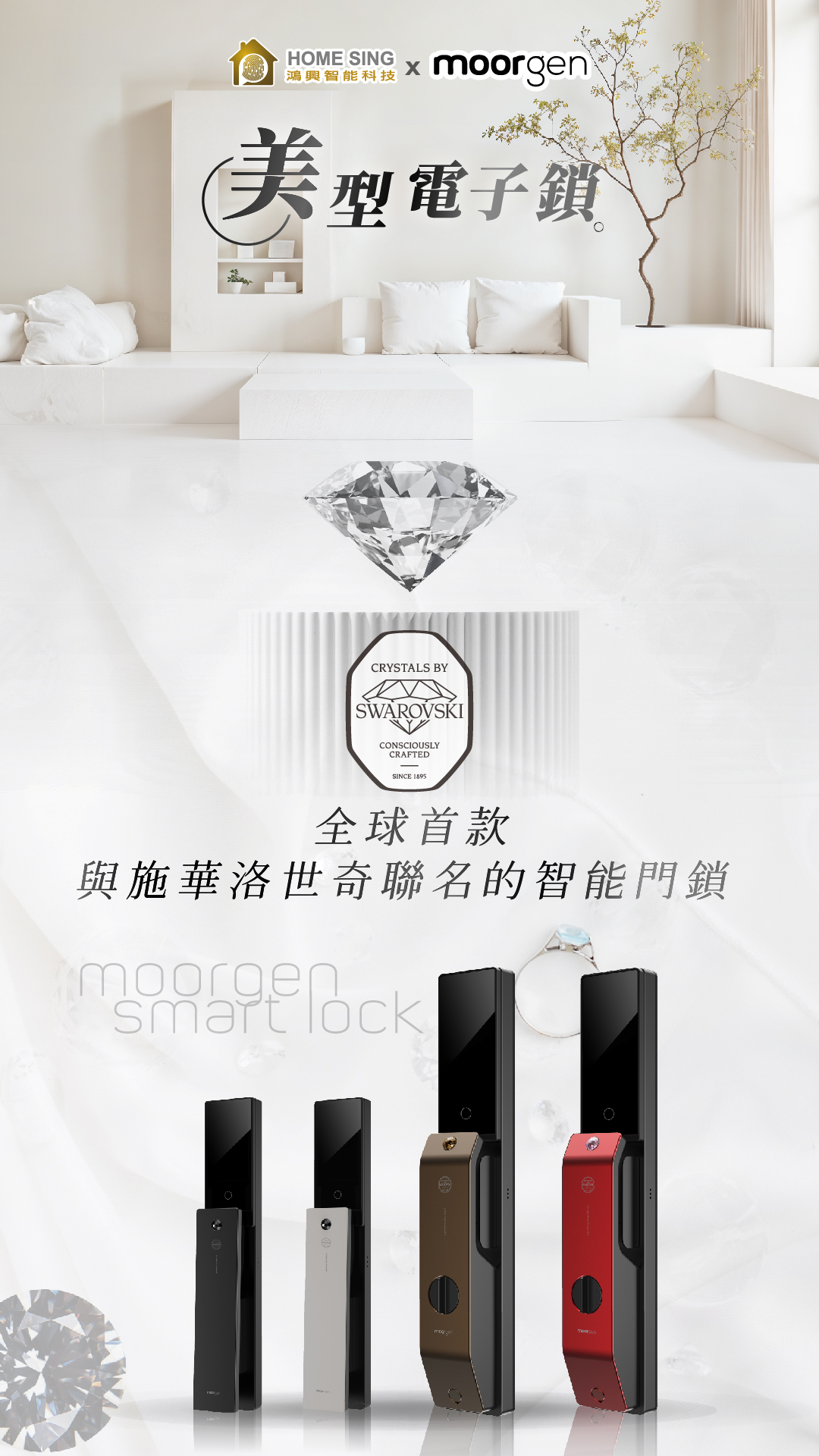 moorgen 的其中一個設計亮點,就是 施華洛世奇水晶開門按鍵。
