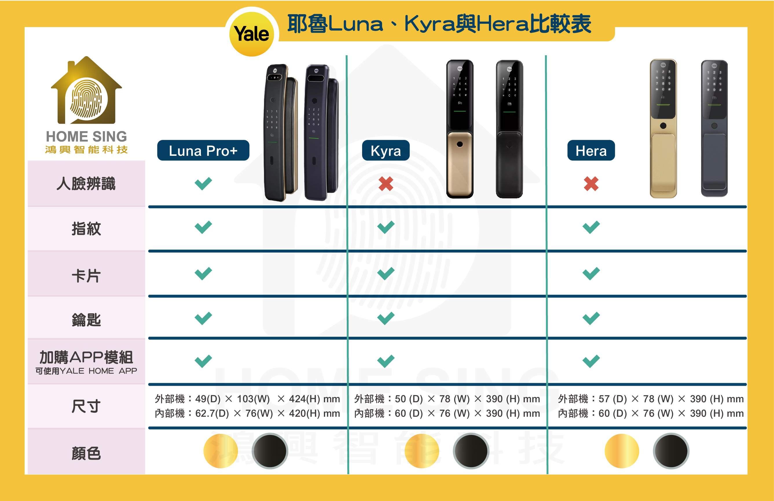 而Kyra Pro 跟 Hera Pro是只差沒有人臉,外觀不同,功能都相同的門鎖