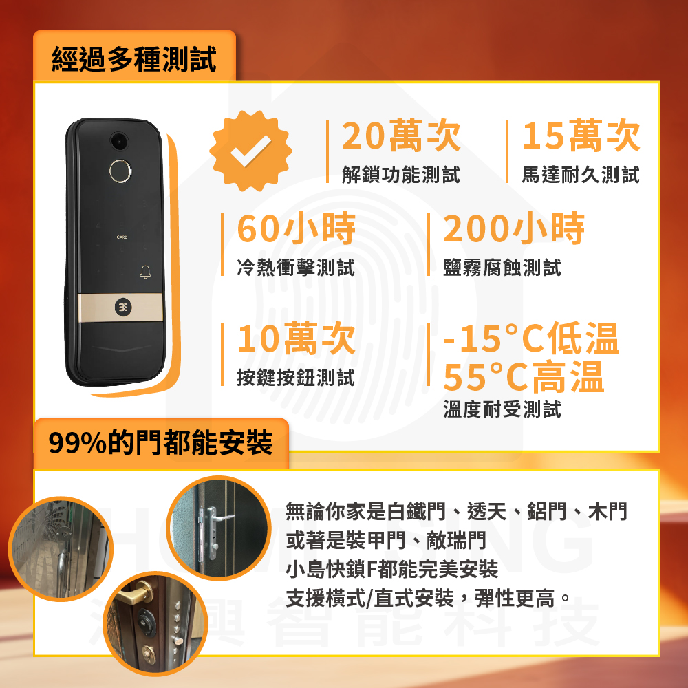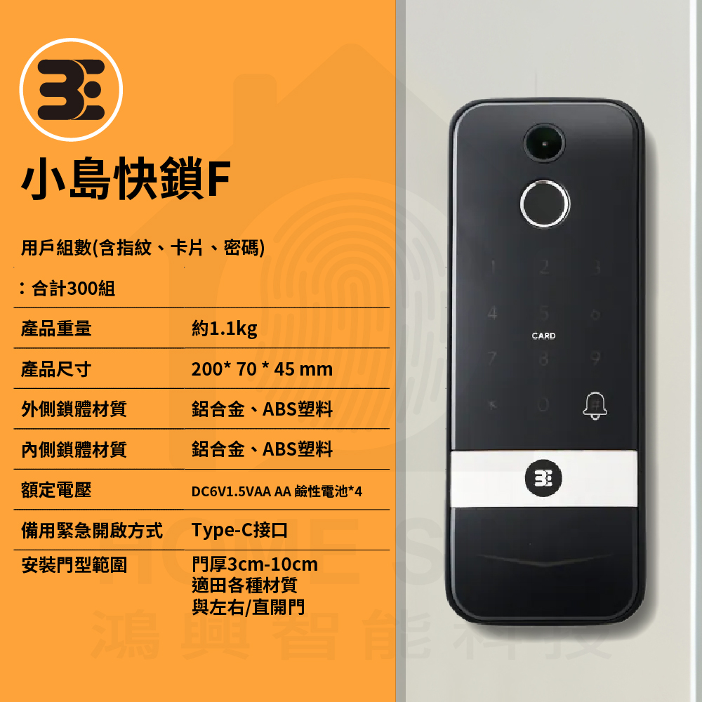 3E 小島快鎖 F|電子貓眼 / 指紋辨識 / 鑰匙 / 卡片 / 密碼解鎖開門