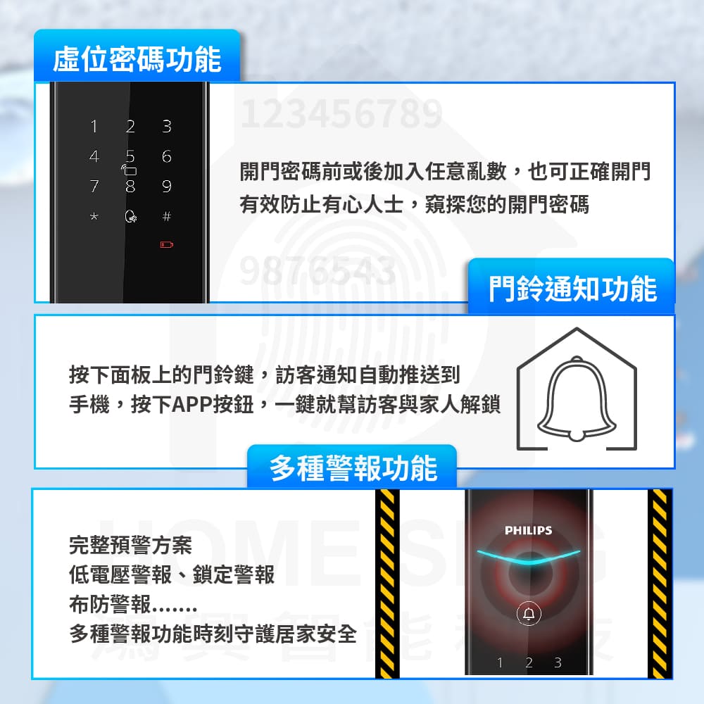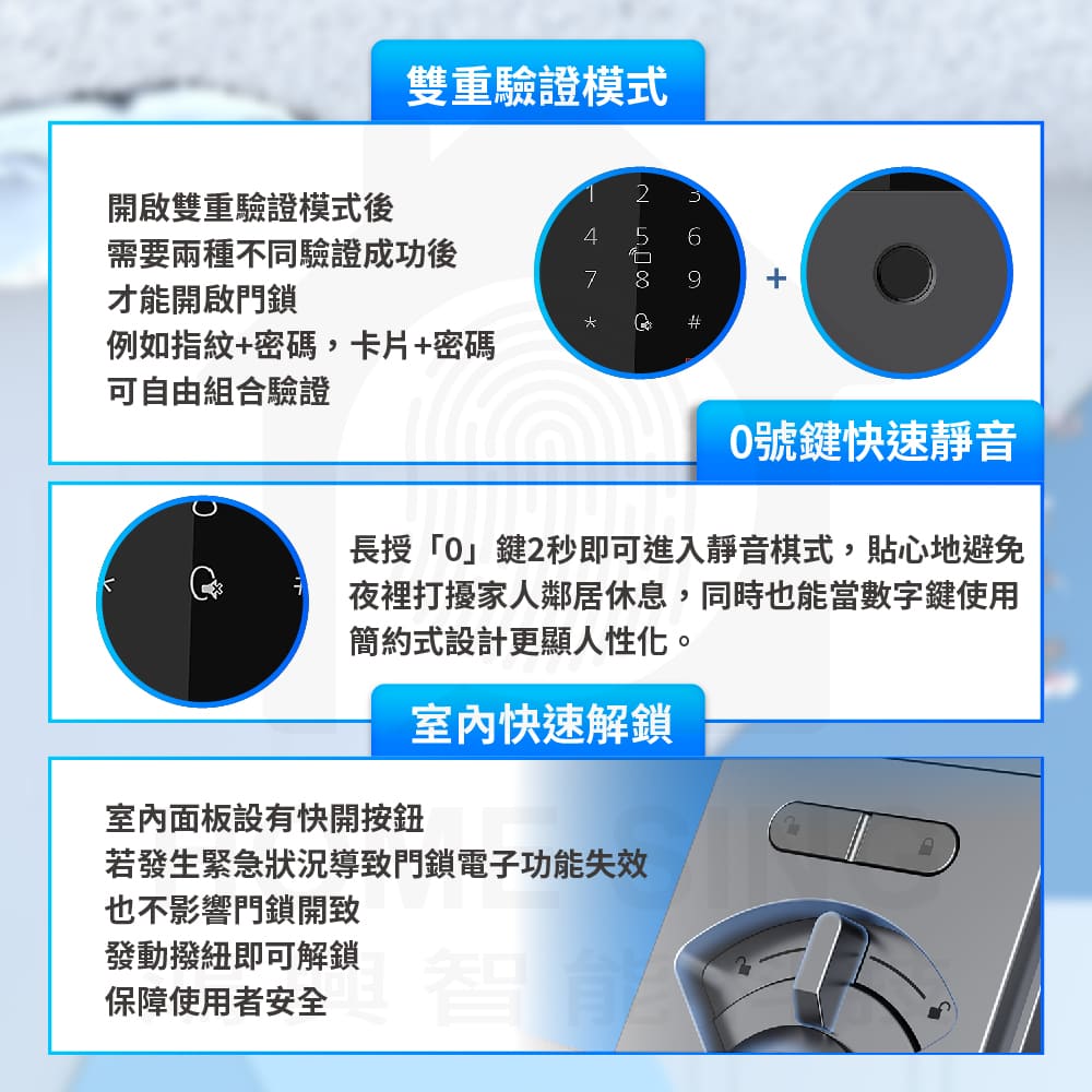 【產品功能】門鈴、指紋、卡片、密碼、鑰匙、WIFI