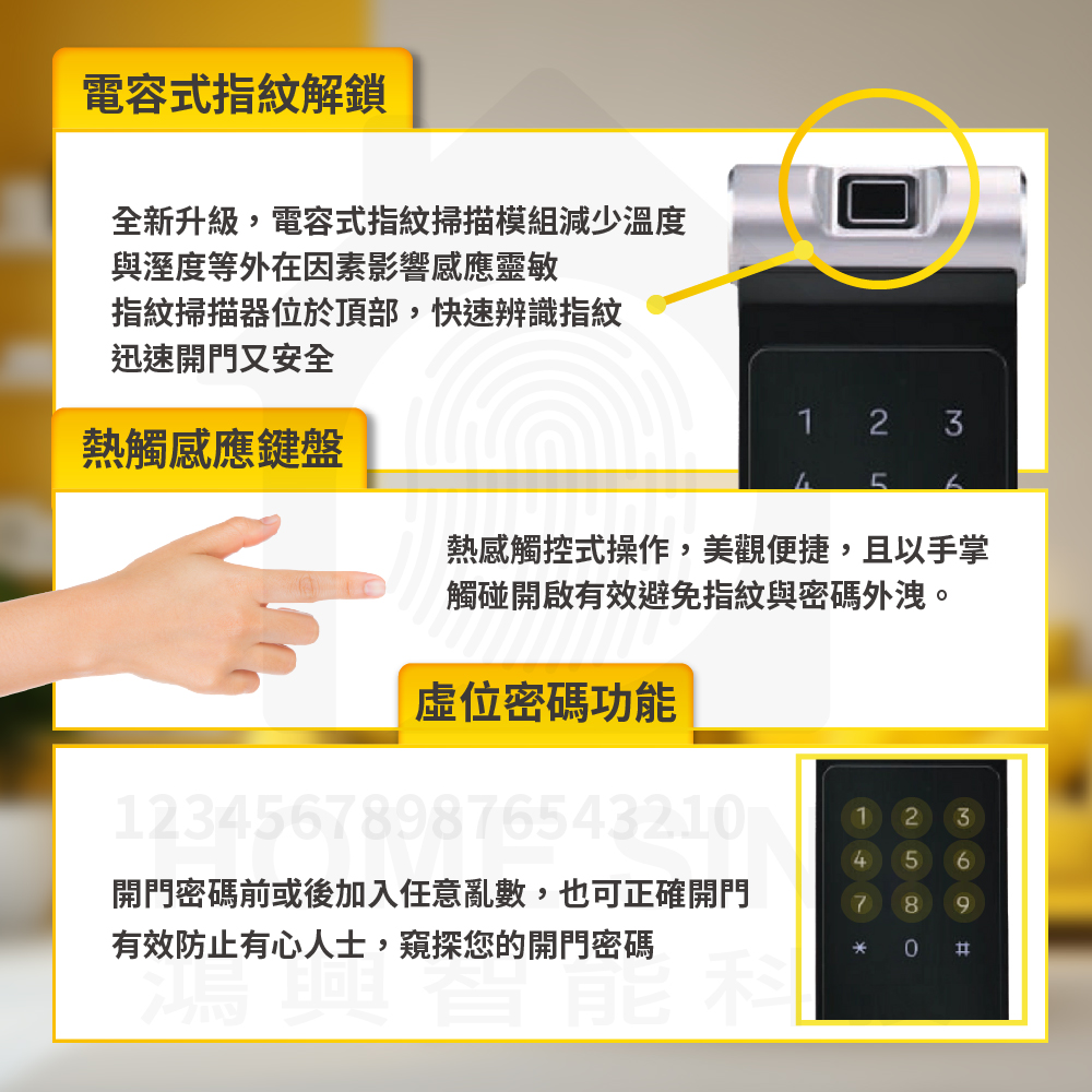 - 密碼開門方式可設定6至12位數字。